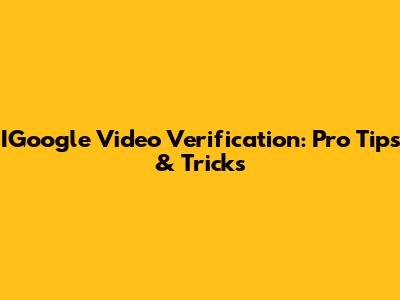 IGoogle Video Verification: Pro Tips & Tricks