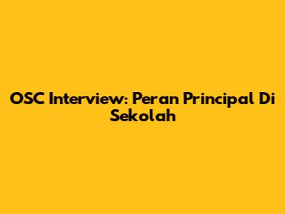 OSC Interview: Peran Principal Di Sekolah