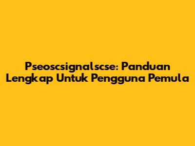 Pseoscsignalscse: Panduan Lengkap Untuk Pengguna Pemula