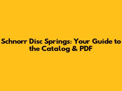 Where to Find the Schnorr Disc Spring Catalogue PDF