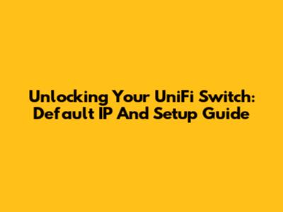 Unlocking Your UniFi Switch: Default IP And Setup Guide