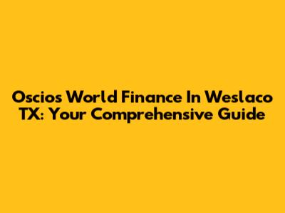 Oscios World Finance In Weslaco TX: Your Comprehensive Guide