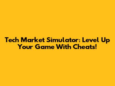 Tech Market Simulator: Level Up Your Game With Cheats!