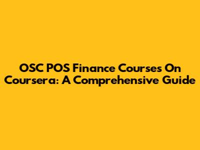 OSC POS Finance Courses On Coursera: A Comprehensive Guide