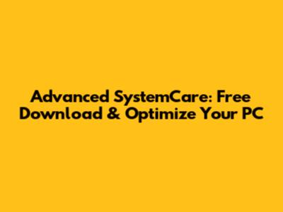 Advanced SystemCare: Free Download & Optimize Your PC