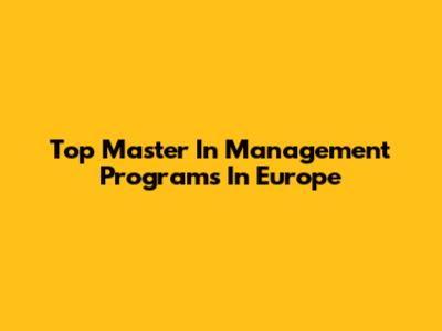 Top Master In Management Programs In Europe
