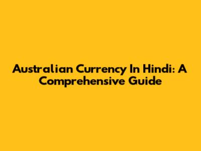 Australian Currency In Hindi: A Comprehensive Guide