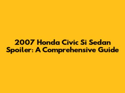 2007 Honda Civic Si Sedan Spoiler: A Comprehensive Guide