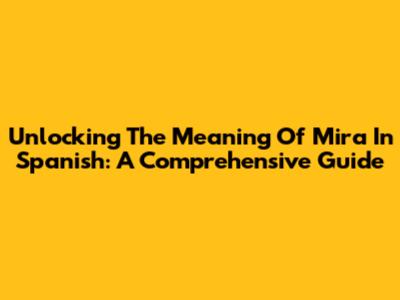 Unlocking The Meaning Of 'Mira' In Spanish: A Comprehensive Guide