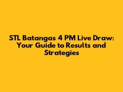 Hey guys! Are you ready to dive into the exciting world of STL Batangas? Specifically, we're talking about the STL Batangas 4 PM Live Draw! This article is your ultimate companion, covering everything from how to find the results to some nifty strategies that might just help you win. So, grab your lucky charm, and let's get started!