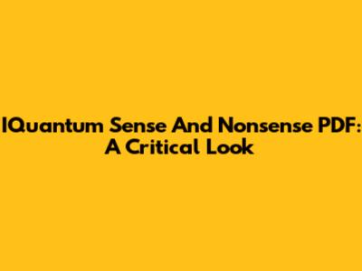 IQuantum Sense And Nonsense PDF: A Critical Look