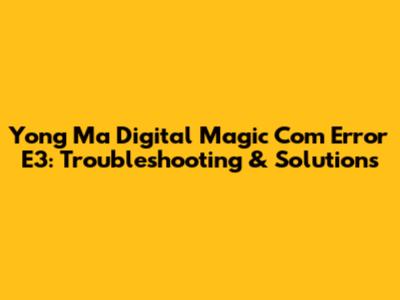 Yong Ma Digital Magic Com Error E3: Troubleshooting & Solutions