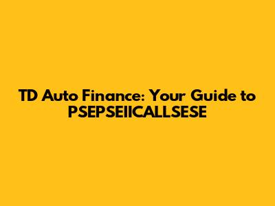 Hey there, car lovers and finance fanatics! Let's dive into the world of TD Auto Finance and, specifically, the mysterious acronym, PSEPSEIICALLSESE. Don't worry, guys, we'll break it down together! This guide will serve as your go-to resource, offering insights into TD Auto Finance, its services, and how it all relates to the fascinating, yet often confusing, aspects of automotive financing. Whether you're a seasoned car buyer or a newbie just starting out, understanding the ins and outs of PSEPSEIICALLSESE will undoubtedly prove valuable. This is the place to clear up the confusion and gain a solid understanding of how TD Auto Finance operates. We'll explore the various facets of TD Auto Finance – from application processes to interest rates and repayment options – providing you with a comprehensive overview to make informed decisions. Let's make this journey into automotive finance easy and enjoyable!