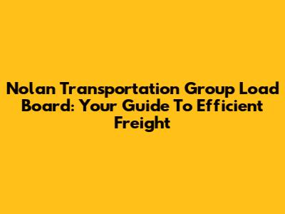 Nolan Transportation Group Load Board: Your Guide To Efficient Freight