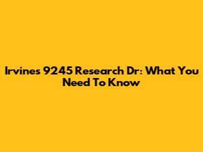 Irvine's 9245 Research Dr: What You Need To Know