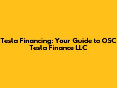 Now, let's focus on OSC Tesla Finance LLC. Who are they, and what do they offer? OSC Tesla Finance LLC is a financial institution that specializes in Tesla financing. They understand the unique requirements of Tesla buyers, and they offer specialized loan products tailored to meet those needs. OSC Tesla Finance LLC stands out as a viable option in the Tesla financing world, providing a dedicated approach to helping customers finance their electric vehicles. This can offer several advantages, including competitive rates and flexible terms. Because they focus specifically on Tesla, they understand the vehicles and the customer base. They can offer more personalized service and understand the nuances of Tesla ownership.