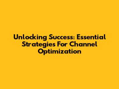 Unlocking Success: Essential Strategies For Channel Optimization