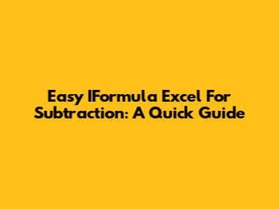 Easy IFormula Excel For Subtraction: A Quick Guide