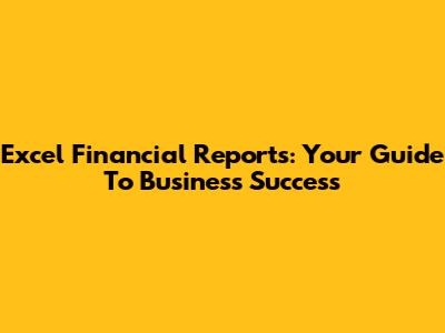 Excel Financial Reports: Your Guide To Business Success