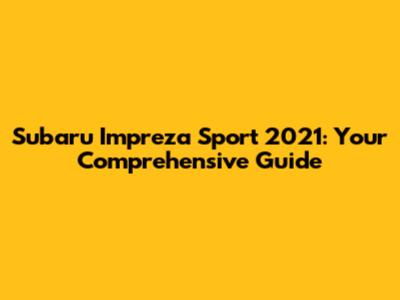 Subaru Impreza Sport 2021: Your Comprehensive Guide