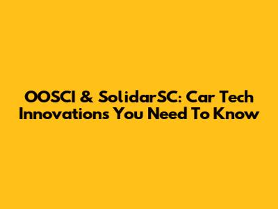 OOSCI & SolidarSC: Car Tech Innovations You Need To Know