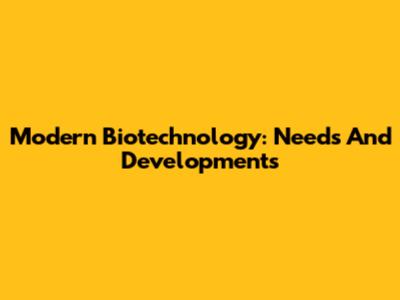 Modern Biotechnology: Needs And Developments