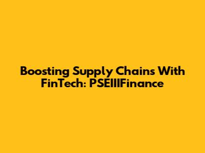 Boosting Supply Chains With FinTech: PSEIIIFinance