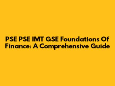 PSE PSE IMT GSE Foundations Of Finance: A Comprehensive Guide