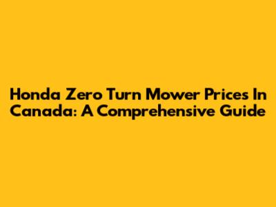 Honda Zero Turn Mower Prices In Canada: A Comprehensive Guide