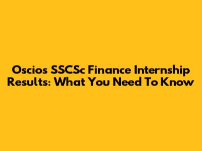 Oscios SSCSc Finance Internship Results: What You Need To Know