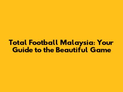 Unveiling Total Football in Malaysia: A Deep Dive