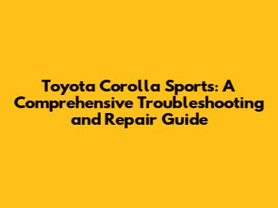 Hey there, gearheads! If you're here, chances are you're either a proud owner of a Toyota Corolla Sports, or you're considering joining the club. Either way, welcome! This guide is designed to be your go-to resource for everything related to troubleshooting and repairing your ride. From common issues to more complex fixes, we'll dive deep into the world of the Corolla Sports and get you back on the road in no time. Let's get started, shall we?
