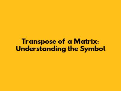 So, there you have it! The symbol for the transpose of a matrix is simply Aᵀ (or sometimes A'). It represents the matrix you get by swapping the rows and columns of the original matrix. Understanding this simple operation and its symbol is a fundamental step in mastering linear algebra. Keep practicing, and you'll become a pro in no time! Happy transposing, guys!