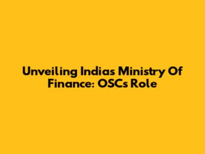 Unveiling India's Ministry Of Finance: OSC's Role