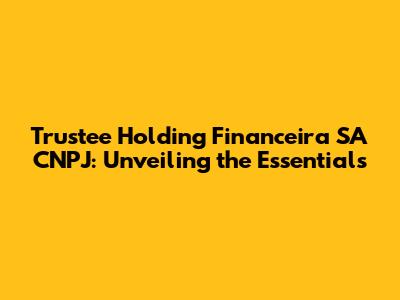 Hey everyone! Let's dive into something that might sound a bit complex at first: Trustee Holding Financeira SA CNPJ. Don't worry, we'll break it down so it's super easy to understand. We will explore what this means, why it matters, and what you should know about it. Think of it as your go-to guide for understanding this financial entity.