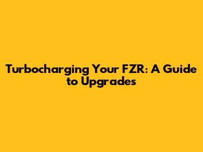 Tuning and Maintenance: Keeping Your Turbo FZR Running Strong