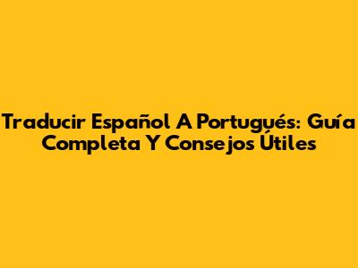Traducir Español A Portugués: Guía Completa Y Consejos Útiles