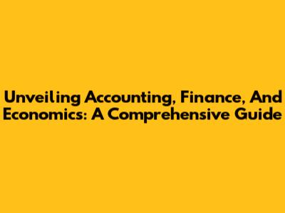 Unveiling Accounting, Finance, And Economics: A Comprehensive Guide