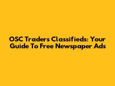 OSC Traders Classifieds: Your Guide To Free Newspaper Ads