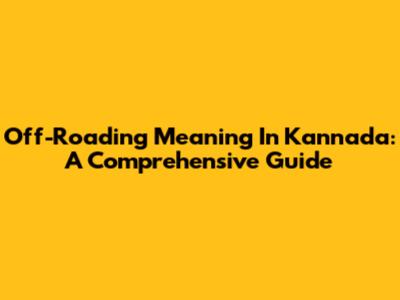 Off-Roading Meaning In Kannada: A Comprehensive Guide