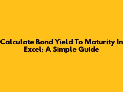 Calculate Bond Yield To Maturity In Excel: A Simple Guide