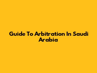 Guide To Arbitration In Saudi Arabia