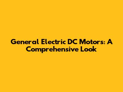 General Electric DC Motors: A Comprehensive Look