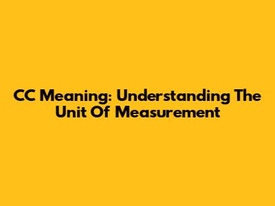 CC Meaning: Understanding The Unit Of Measurement