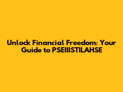 Introducing PSEIIISTILAHSE: Your Financial Freedom Framework