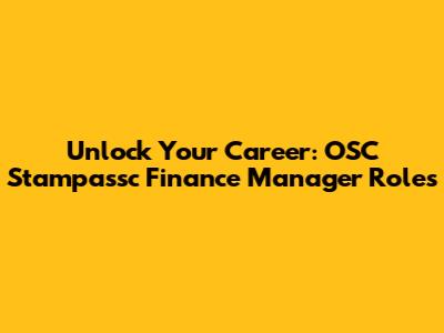 Unlock Your Career: OSC Stampassc Finance Manager Roles