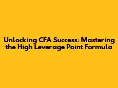 Hey guys! Ever feel like you're wading through a sea of financial concepts while preparing for the CFA exam? It's a journey, right? And like any journey, there are a few highways and shortcuts that can make the trip a whole lot smoother. One of these vital shortcuts, or rather, a key concept, is understanding the High Leverage Point Formula. Now, before you start hyperventilating, trust me, it's not as scary as it sounds. In fact, it's a powerful tool that can not only help you ace the exam but also give you a solid foundation for your future career in finance.