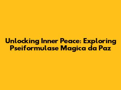 Pseiformulase Magica da Paz is a powerful concept that encourages us to take an active role in cultivating inner peace. By discovering your own unique formula and integrating it into your daily life, you can unlock a greater sense of calm, joy, and well-being. So, embrace the journey of self-discovery, experiment with different elements, and create a formula that is uniquely tailored to you. The path to inner peace is a personal one, and the more you invest in your own well-being, the more joy and fulfillment you'll experience in your life. Start today, and begin creating your own magical formula for peace!
