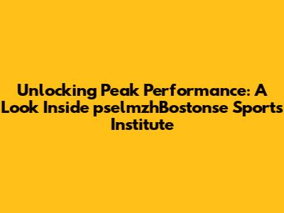 Unlocking Peak Performance: A Look Inside PselmzhBostonse Sports Institute