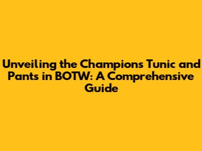 Hey there, fellow adventurers! Ever gazed upon Link's iconic Champion's Tunic and Pants in The Legend of Zelda: Breath of the Wild (BOTW) and thought, "Man, I gotta get those"? Well, you're in the right place, because today, we're diving deep into how you can snag these awesome threads for yourself. We're going to cover everything, from the basics to some cool tips and tricks to make your quest a breeze. So, grab your Hylian Shield, sharpen your Master Sword, and let's get started! The Champion's Tunic and Pants aren't just for show, guys; they offer some serious perks that'll help you on your journey across Hyrule. They're a symbol of Link's status as a champion, and donning them will make you feel like one too. Getting this outfit is like the ultimate fashion statement for your hero, and it's a solid upgrade in terms of defense and style. Let's start with the tunic. It's the most recognizable piece. It’s a stylish upgrade from his default clothes, offering not only a sleek look but also a boost to your defenses. The Champion's Tunic, with its intricate design and regal look, is a visual treat. Let's not forget the pants, complementing the tunic, they provide an extra layer of protection, making Link a tougher opponent against the game’s various threats. So, understanding how to get the Champion's Tunic and Pants is vital for any player hoping to fully experience the game, and let me tell you, it's a worthwhile endeavor.